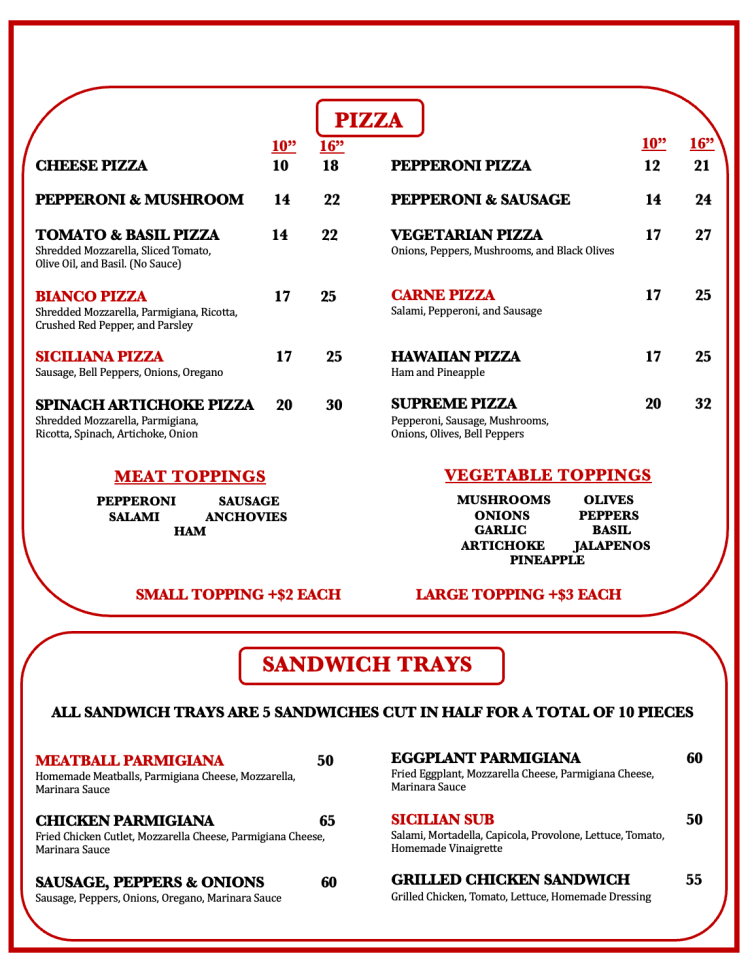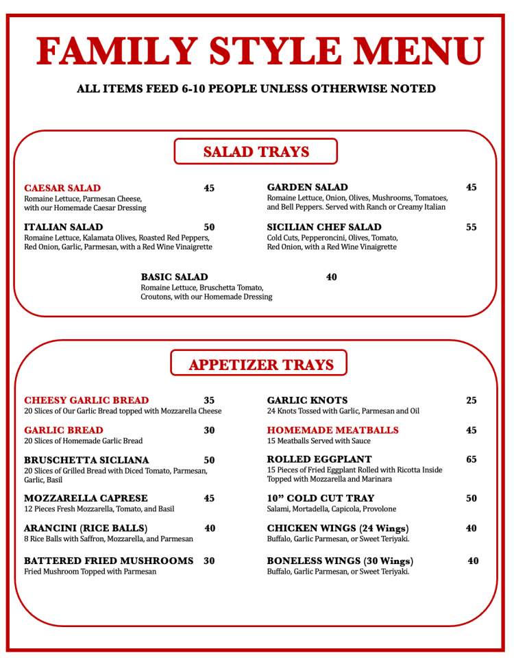 The Sicilian Pizzeria and Ristorante is excited to introduce a brand-new Build-Your-Own Family Style Party Menu, perfect for your next celebration. Whether you’re planning a birthday, anniversary, team party, rehearsal dinner, or any special gathering, these dine in menus allow you to customize a delicious, family-style Italian feast that everyone will enjoy. Create the perfect meal by selecting from a variety of our classic Italian dishes, all served in generous portions to share with your guests. To learn more or to start planning your event, give us a call at 702-458-2004 or email SicilianRistorante@gmail.com. Make your next celebration unforgettable with authentic flavors and a welcoming atmosphere at The Sicilian.